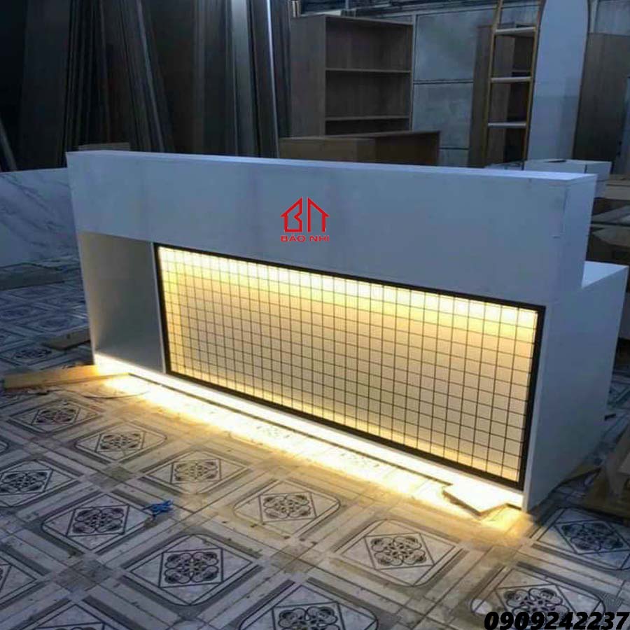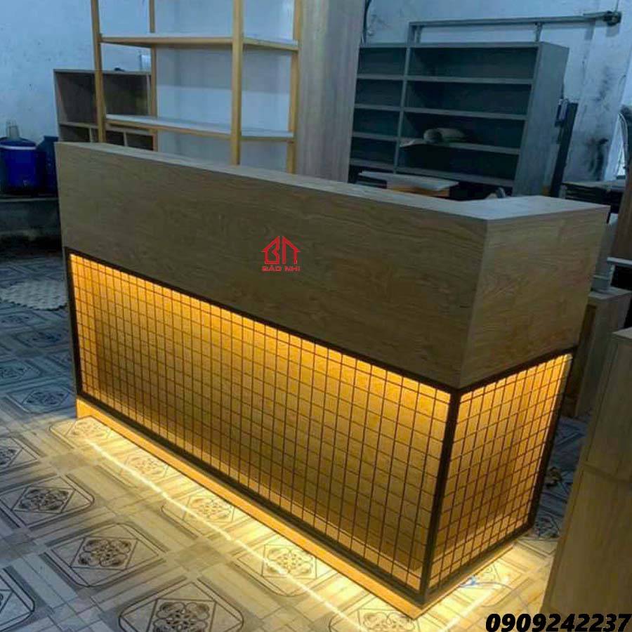 Quầy Lễ Tân – LT 01 MDF Phủ Melamine là dòng Quầy Lễ Tân cao cấp với thiết kế góc cạnh kết hợp với các song gỗ dọc tạo nên sự hiện đại và chắc chắn. Thiết kế năng động, gọn nhẹ, dễ dàng di chuyển cũng như kết hợp với không gian Văn Phòng, Spa, Holtel, Cafe,…